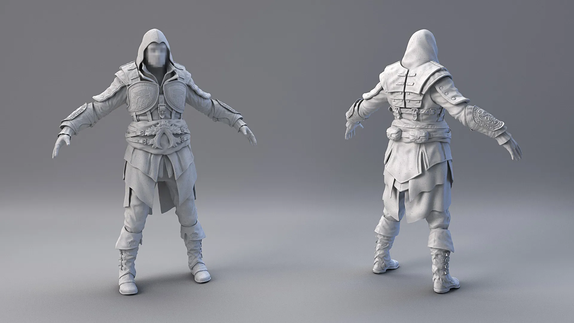 After more than a year I can finally show my Assassin’s Creed character again. For now, I can only show a still, but the character is animated and I will upload a turntable, walk cycle, breakdown and some making-of material later this year. Make sure to check out the original work in progress post of this character too.