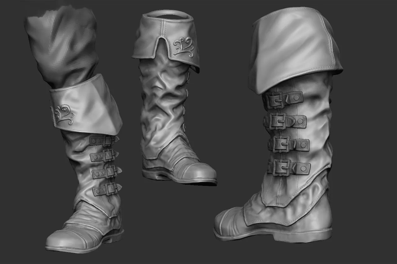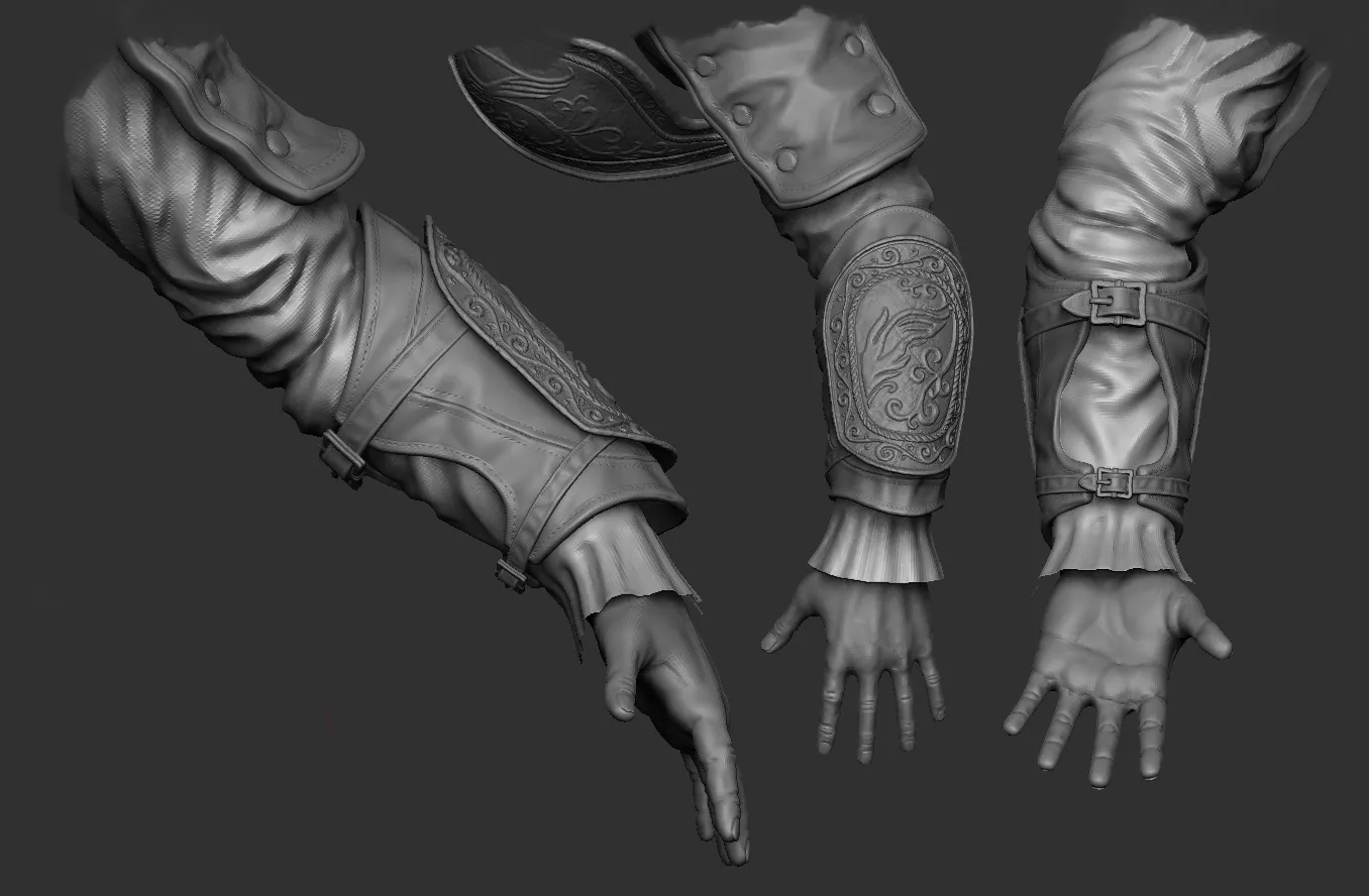 It was a long year and I learned a lot at Ringling College of Art and Design about anatomy. Looking back I would have modeled and sculpted a lot of things differently but what done is done and I kind of have to finish the chracter someday. That’s why I finished all the textures, rigged the lowpoly model and tweaked a lot of things. I probably shouldn’t have put all the different parts into one mesh, but back then it seemed like the best idea to skin a complicated character like this. It gave me a great oppurtunity to learn more about the maya rigging and cloth systems. I rigged the character with the help of the great turorial series Maya Rigging by Jahirul Amin. I want to make sure that I do not work for Ubisoft and this is unofficial fan art based on concepts from various AC games.