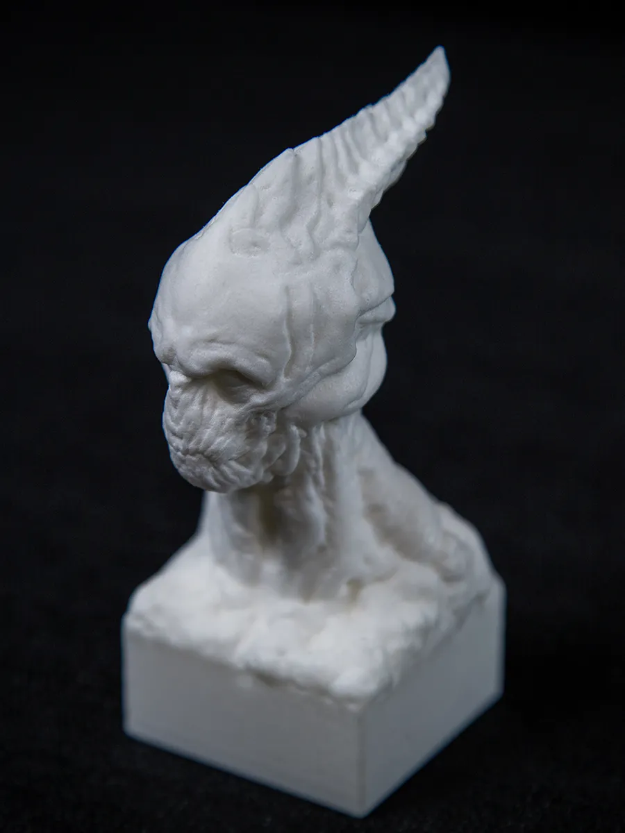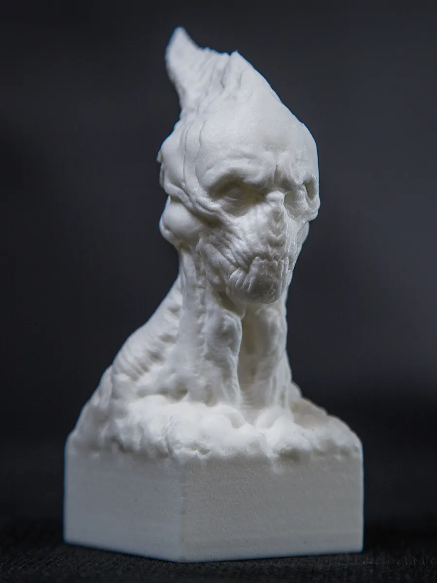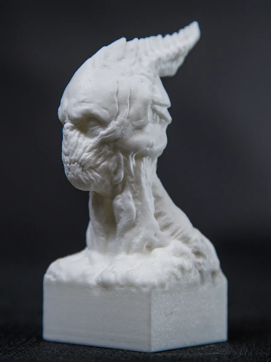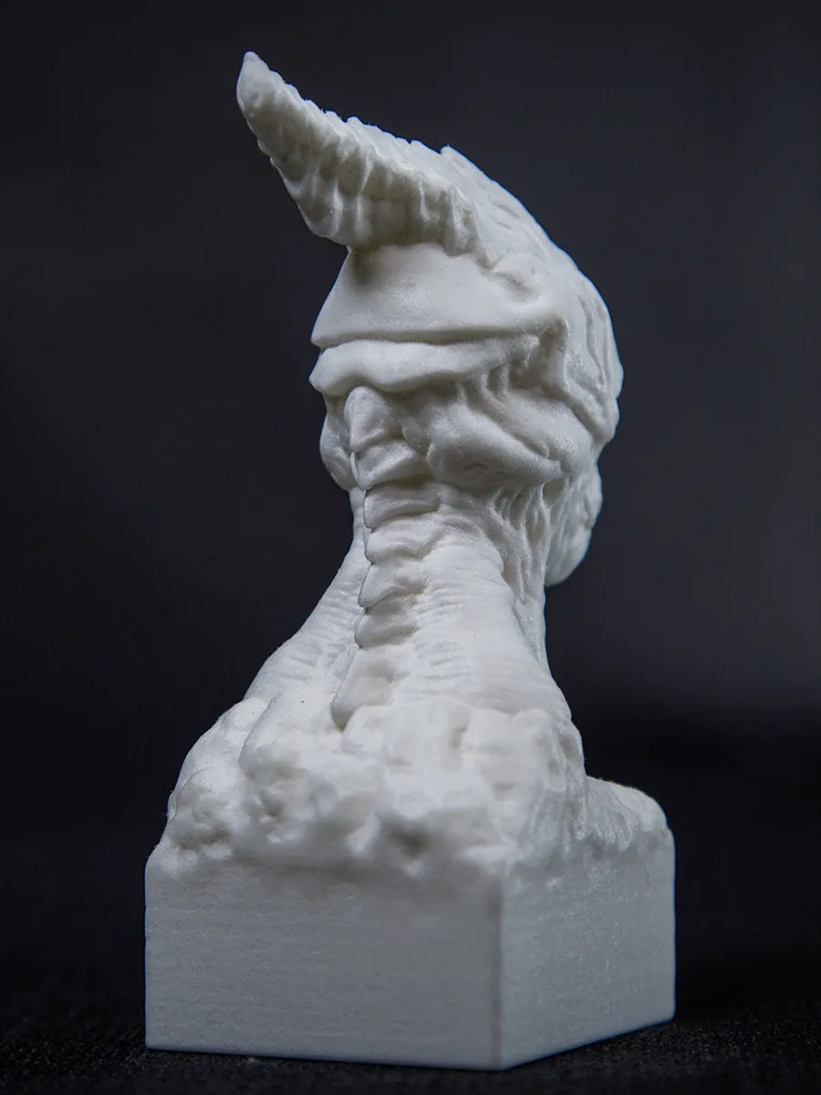 A few weeks ago I reworked a statue that I created earlier. After adding a pedestal to the bust I sent it to Shapeways, and they printed the 4 inches high monster. This week Guilherme Cohen took some nice photos of final product.