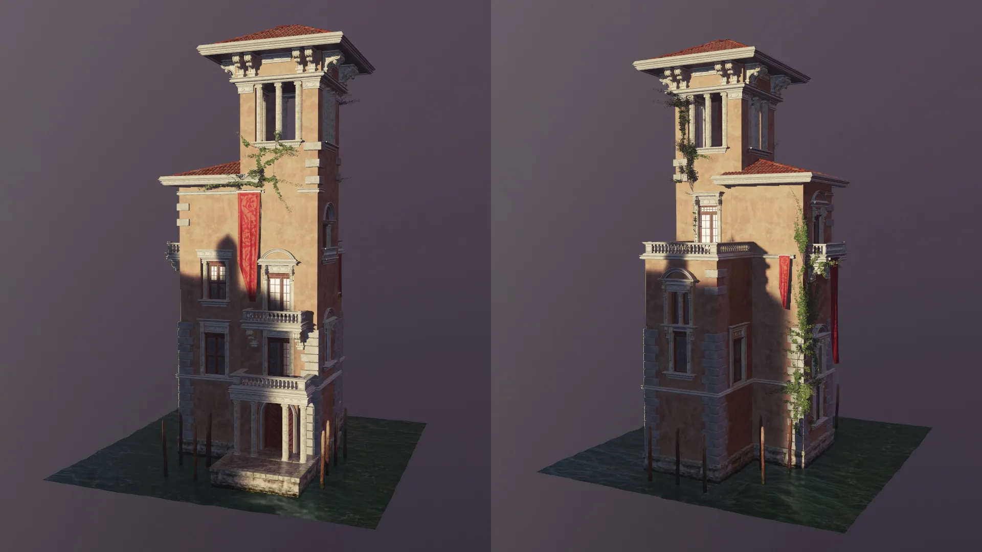 This building was done for Environment Creation for Games with Nate Stephens. He taught us so much about asset creation and modular environments for games. Initially I started of with a concept from Titus Lunter and ended up with a palace out of Venice.